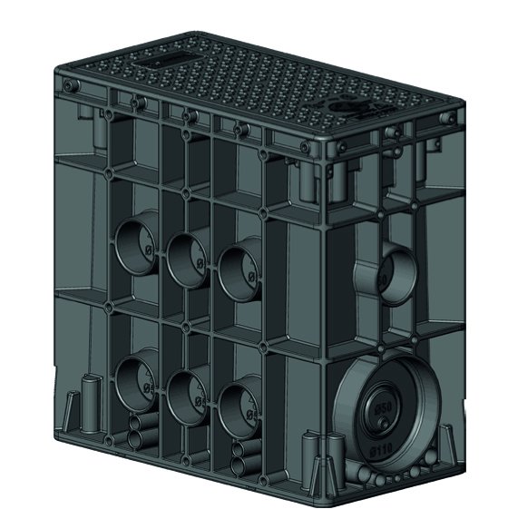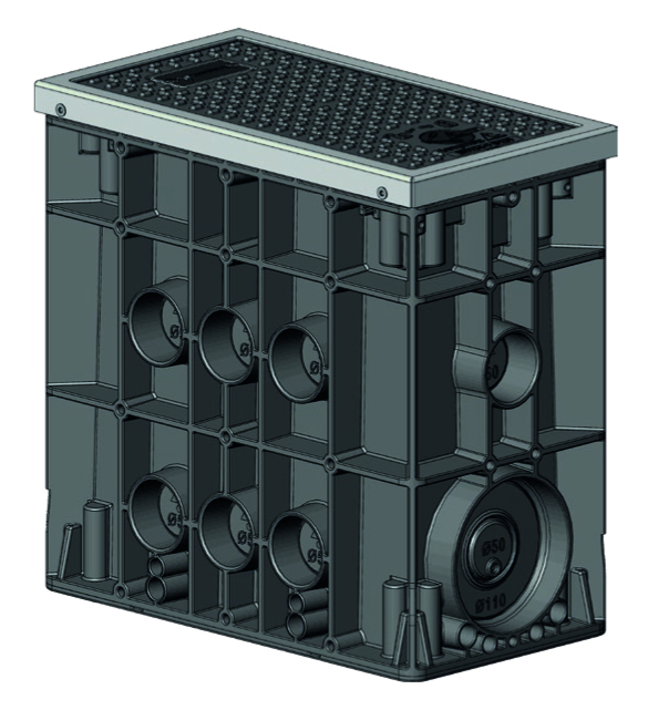 Seine speziell vorbereiteten Durchführungen ermöglichen eine problemlose Einführung von Rohren und Kabeln unterschiedlicher Durchmesser und machen die Infrastrukturverwaltung zum Kinderspiel.